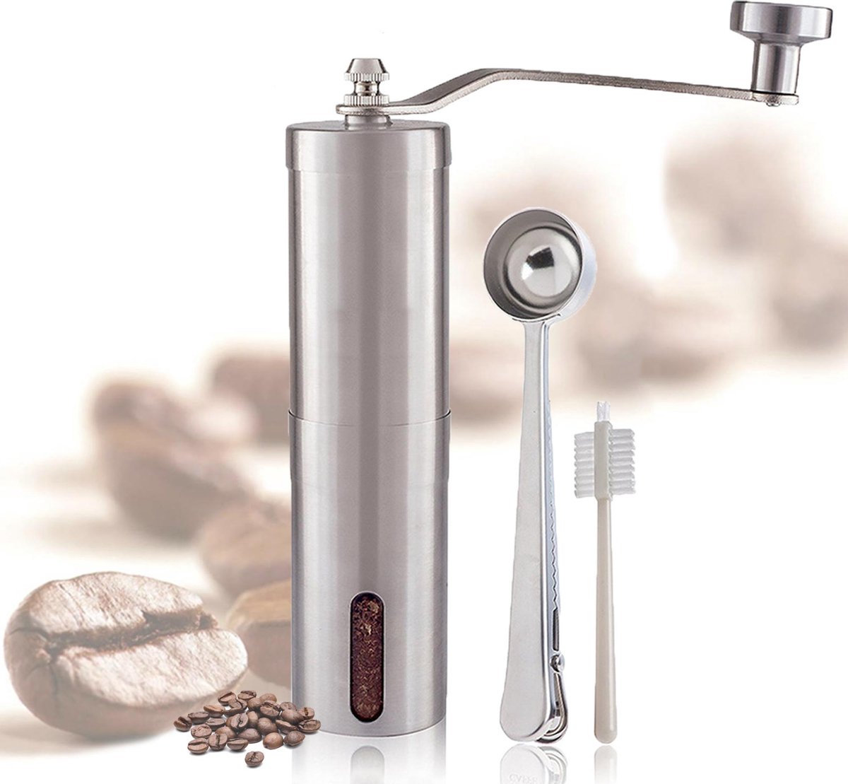 Deze handmatige koffiemolen van is een stijlvol en draagbaar apparaat. De molen is gemaakt van roestvrij staal en heeft een keramische molen. Het is een handig apparaat waar je geen stroom voor nodig hebt. Dat maakt het wat ons betreft een ideale keuze voor op reis of voor onderweg.