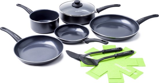 Naast de gebruiksvriendelijkheid is ook de antiaanbaklaag van de pannen voor inductie belangrijk. Sommige verkrijgbare pannen bevatten namelijk een antiaanbaklaag met stoffen die niet goed zijn voor je gezondheid. De GreenChef Pannenset Inductie is een pannenset die deze schadelijke stoffen niet bevat. Zo bereid je eenvoudig op een gezonde manier je maaltijden.